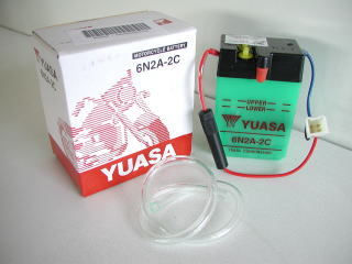 OEM PARTS, YUASA, JAPAN 6V ACID BATTERY, MONKEY & OTHER HONDA MODELS (6V SAEURE BATTERIE, MONKEY) #: 6N2A-2C PRICE: 26,80 EURO * 6V 4AH * RED (+) COUPLER TERMINAL = MALE (ROT (+) STECKER = MAENNLICH) * BLUE (-) COUPLER TERMINAL = MALE (BLAU (-) STECKER = MAENNLICH) * WITH 10A (7A250V) FUSE (MIT 10A SICHERUNG) * WITHOUT SULFRIC ACID (OHNE SAEURE) * SIZE: 70 X 47 X 106 MM SOLD OUT |